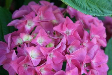 Keywords: hydrangea chistmas rose very pink florrets white centres dense dainty delicate round head green leaves