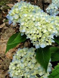 Keywords: hydrangea flowers blue light blue budding plant shrub leaves