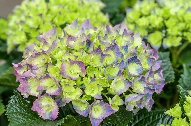 Keywords: hydrangea neon green purple pink flower blossom bloom spring summer vibrant gardening garden nature plant