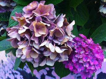 Keywords: hydrangea sunny unusual color craft atmosphere orange blue red purple yellow midori green leaf otsu city yokosuka japan