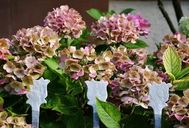 Keywords: hydrangeas garden garden fence blossom bloom pink hydrangea flowers summer flower greenhouse hydrangea