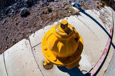 Keywords: hydrant street yellow fisheye fire water city urban protection emergency equipment sidewalk color steel road