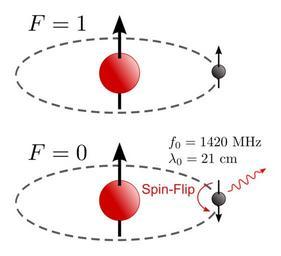 | Keywords: Hydrogen-SpinFlip.svg en Ground state hyperfine levels of hydrogen parallel and antiparallel with the spin-flip transition emitting radiation at 1420 MHz The corresponding wavelength is 21 cm 21-cm line hydrogen line de Wasserstoff im Grundzustand mit magnetisch paralleler F 1 und antiparalleler F 0 Einstellung des Elektrons Hyperfeinstruktur Durch den Spin-Flip-à bergang wird ein Energiebetrag frei der einer Frequenz von 1420 MHz entspricht Wegen der zugehörigen Wellenlänge von 21 cm wird die Strahlung auch 21-cm Linie genannt alternativ Wasserstofflinie HI-Linie Own Tiltec 2009-01-18 made using Inkscape with TexText Radio astronomy Hydrogen physics |