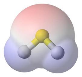 MAKE A MEME View Large Image Hydrogen-sulfide-elpot-transparent-3D-balls.png A van der Waals' surface coloured according to charge superimposed on a ball-and-stick model of the hydrogen sulfide molecule H<sub>2</sub>S Red represents partially negatively charged regions ...