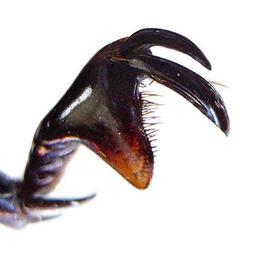 Keywords: Hydrous piceus front tibia male.jpg front tibia of male Hydrous piceus photo made by myself 2007-03-26 Siga public domain Hydrophilus piceus anatomy Coleoptera legs