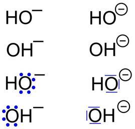 Keywords: Hydroxid Ion General Formulae V.1.svg en Hydroxid_Ion_General_Formulae de Hydroxid-Ion_ verschiedene gebräuchliche Schreibweisen own Jü 2012-11-09 Chemical structures to explain nomenclature Cc-zero