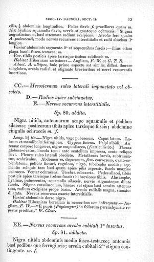 | Keywords: HymenopteraBritannicaBraconidaeBrittanicaPage13.jpg en Haliday A H 1839 Hymenoptera Britannica Oxyura et Alysia London Balliére Fasc 1 15 Fasc 2 28 et 4 Hymenoptera Britannica Scan A H Haliday 1839 Hymenoptera Britannica Oxyura et Alysia PD-old-100 |