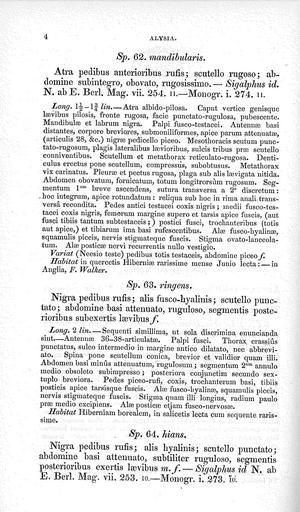 | Keywords: HymenopteraBritannicaBraconidaeBrittanicaPage4.jpg en Haliday A H 1839 Hymenoptera Britannica Oxyura et Alysia London Balliére Fasc 1 15 Fasc 2 28 et 4 Hymenoptera Britannica Scan A H Haliday 1839 Hymenoptera Britannica Oxyura et Alysia PD-old-100 |