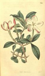 Keywords: Hyperacanthus amoenus Bot. Mag. 44. 1904. 1816.jpg Hyperacanthus amoenus Bot Mag 44 t 1904 as gardenia amoena 1816 John Sims PD-Art Hyperacanthus amoenus Curtis's Botanical Magazine Volume 44