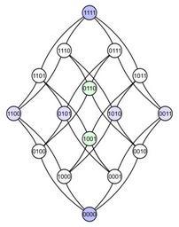 | Keywords: Hypercubematrix binary.svg Tesseract Hasse diagram The vertices are arranged like the fields of a 4x4 matrix Inkscape own Mate2code Compare 200px 200px Tesseract Hasse diagrams 4x4 matrices representing tesseracts Colored nibbles blue green white |