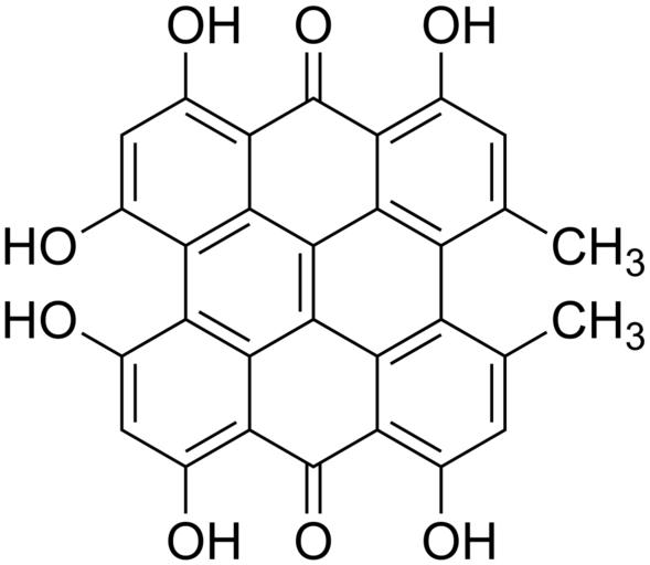 | Keywords: Hypericin 200.svg validSVG Structure of 1 3 4 6 8 13-hexahydroxy-10 11-dimethylphenanthro1 10 9 8-opqraperylene-7 14-dione Own 2014-04-23 Emeldir <span class signature-talk >talk</span> Chemical structure verified https //upload wikimedia org/wikipedia/commons/0/02/Hypericin_200 svg 1S/C30H16O8/c1-7-3-9 31 19-23-15 7 16-8 2 4-10 32 20-24 16 28-26-18 12 34 6-14 36 22 26 30 20 38 17-11 33 5-13 35 21 29 19 37 25 17 27 23 28/h3-6 31-36H 1-2H3 BTXNYTINYBABQR-UHFFFAOYSA-N 548-04-9 Synonyms <small>1 3 4 6 8 13-Hexahydroxy-10 11-di-methylphenanthro 1 10 9 8 opqra perylene-7 14-dione 4 4' 5 5' 7 7'-Hexahydroxy-2 2'-dimethylnaphthodianthrone 4 5 7 4' 5' 7'-Hexahydroxy-2 2'-dimethylnaphthodianthrone Cyclo-Werrol Cyclosan Hiperikum Hipérico Hyperici Herba Hypericin Hypericin native Hypericin diagnostic and therapeutic - Sanochemia Hypericum Hypericum red Johannesört Johanniskraut Jonažoliu žole Millepertuis Mäkikuisma Orbáncfu PVP hypericin St John's Wort Trezalková nat VIMRxyn Vimrxyn Ziele dziurawca</small> PD-chem Hypericin |