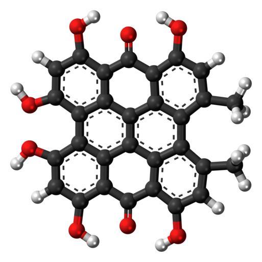 | Keywords: Hypericin 3D ball.png Ball-and-stick model of the hypericin molecule an antibiotic found in St John's wort Color code 505050 Carbon C black<br> F0F0F0 Hydrogen H white<br> F51E1E Oxygen O red<br> 2011-07-18 own DS Visualizer Jynto talk Space-filling version cc-zero Images by Jynto Ball-and-stick models Hypericin |
