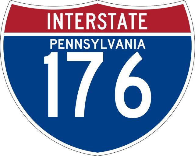| Keywords: I-176 (PA).svg 750 mm by 600 mm 30 in by 24 in Interstate shield made to the specifications of the http //mutcd fhwa dot gov/SHSm/Guide pdf 2004 edition of Standard Highway Signs sign M1-1 Uses the http //www triskele com/fonts/index html Roadgeek 2005 fonts United States law does not permit the copyrighting of typeface designs and the fonts are meant to be copies of a U S Government-produced work anyway Colors are from http //mutcd fhwa dot gov/kno-colorspec htm Pantone Red 187 and Blue 294 converted to RGB by http //www reeddesign co uk/test/pantone2rgb html The outside border has a width of 1 1 mm and a color of black so it shows up; in reality signs have no outside border own Ltljltlj User Ltljltlj/Template Interstate 176 Three-digit Interstate Highway shields with name of state 76-1 Pennsylvania |
