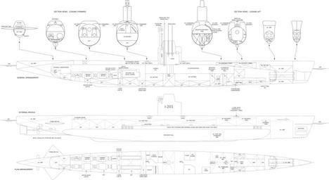 | Keywords: I-201 class general arrangement sections.svg en GA profile plan and section views of WW2 era Japanese submarine I201 Part of the I-201 class of high-speed submarines own Lakkasuo 2010-10-12 Vectorised from US Navy sources that are in the public domain I-201 class submarine General arrangements Sectioned drawings |
