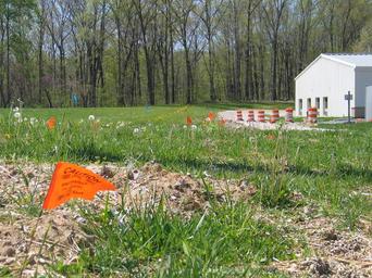 | Keywords: i-69 i69 interstate 69 interstate69 indiana monroe county monroecounty road bridge overpass construction infrastructure crane i-69 development partners i69developmentpartners isolux corsán usa isoluxcorsánusa state road 37 stateroad37 Indiana I-69 Corridor Project, Section 5; Fullerton Pike work zone, Monroe County, Indiana Before work can commence on the western traffic circle for the new Interstate 69/Fullerton interchange, a short segment of road must be constructed first to maintain access to Monroe Hospital in Monroe County, Indiana. Pictured is the location of said access road. Looking west, the segment runs straight then bends 90 degrees right, curling around the white structure. In total, the length is about 200 yards. The orange flags indicate the location of buried fiber optic cable. Yellow markers traditionally indicate gas lines, and blue, waterlines. But here, while they probably are indicative of said utilities, it is not a certainty. I-69 Development Partners; Isolux Corsán USA, prime contractor Indiana I-69 Corridor Project, Section 5; Fullerton Pike work zone, Monroe County, Indiana Before work can commence on the western traffic circle for the new Interstate 69/Fullerton interchange, a short segment of road must be constructed first to maintain access to Monroe Hospital in Monroe County, Indiana. Pictured is the location of said access road. Looking west, the segment runs straight then bends 90 degrees right, curling around the white structure. In total, the length is about 200 yards. The orange flags indicate the location of buried fiber optic cable. Yellow markers traditionally indicate gas lines, and blue, waterlines. But here, while they probably are indicative of said utilities, it is not a certainty. I-69 Development Partners; Isolux Corsán USA, prime contractor |
