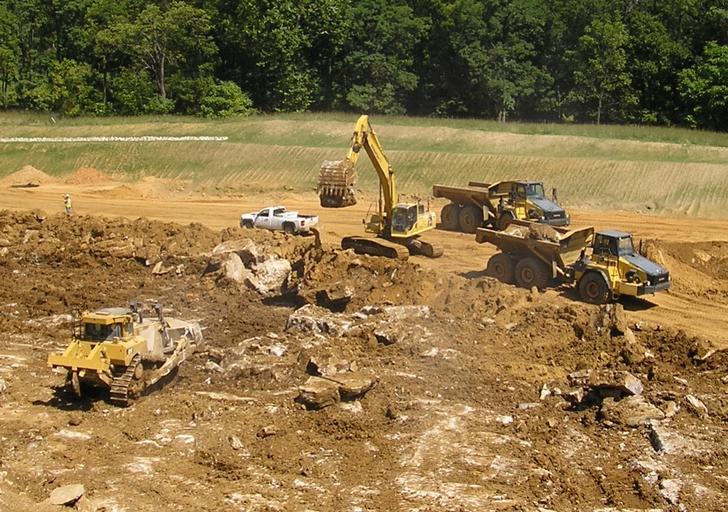 | Keywords: i-69 i69 interstate 69 interstate69 indiana monroe county monroecounty interstate road construction excavation e & b paving ebpaving freeway excavator rock dump truck dumptruck truck As crews work to form the roadbed for Interstate 69 near W. Carter Road in Monroe County, Indiana, a large-bucket excavator works to break a large rock down to manageable size by dropping it against another rock; looking east from near W. Carter Road. E & B Paving, prime contractor (Indiana I-69 Project, Section 4, Segments 6/7). As crews work to form the roadbed for Interstate 69 near W. Carter Road in Monroe County, Indiana, a large-bucket excavator works to break a large rock down to manageable size by dropping it against another rock; looking east from near W. Carter Road. E & B Paving, prime contractor (Indiana I-69 Project, Section 4, Segments 6/7). |