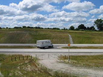 | Keywords: i-69 i69 interstate 69 interstate69 indiana monroe county monroecounty interstate freeway road construction infrastructure e & b paving ebpaving On Interstate 69 near the Burch Road overpass in Monroe County, Indiana, a box truck performs an illegal U-turn at a crossing designated solely for emergency vehicles. Apparently, this is not at all unusual as already one of two posted No U-Turn signs has been knocked down (pictured left of the truck). The emergency access gate (foreground) is the only such entrance to an interstate in the state of Indiana. Access is strictly controlled and is limited to emergency response units. This stretch of I-69 was completed and opened to traffic in December of 2014. On Interstate 69 near the Burch Road overpass in Monroe County, Indiana, a box truck performs an illegal U-turn at a crossing designated solely for emergency vehicles. Apparently, this is not at all unusual as already one of two posted No U-Turn signs has been knocked down (pictured left of the truck). The emergency access gate (foreground) is the only such entrance to an interstate in the state of Indiana. Access is strictly controlled and is limited to emergency response units. This stretch of I-69 was completed and opened to traffic in December of 2014. |