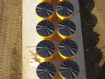 | Keywords: i-69 i69 interstate 69 interstate69 indiana greene county greenecounty road interstate construction freeway infrastructure fitch barrier fitchbarrier barrels fitch barrels fitchbarrels milestone contractors milestonecontractors Fitch Barriers lined up in front of the median pier of the bridge carrying Hobbieville Road over Interstate 69 in Greene County, Indiana; looking down and north from Hobbieville Road bridge. These familiar and common barrels, named after the man who devised them, race car driver John Fitch, form a simple yet effective system to reduce the severity of crashes. Filled with sand in increasing gradations, the barriers help slow a vehicle on impact, and lessen a potential violent impact with a solid obstruction, such as a bridge abutment or column. The barriers are inexpensive, easy to maintain, and have saved thousands of lives since their implementation in the late 1960s. Milestone Contractors, prime contractor (Indiana I-69 Corridor Project, Section 4, Segments 4/5/6a). Fitch Barriers lined up in front of the median pier of the bridge carrying Hobbieville Road over Interstate 69 in Greene County, Indiana; looking down and north from Hobbieville Road bridge. These familiar and common barrels, named after the man who devised them, race car driver John Fitch, form a simple yet effective system to reduce the severity of crashes. Filled with sand in increasing gradations, the barriers help slow a vehicle on impact, and lessen a potential violent impact with a solid obstruction, such as a bridge abutment or column. The barriers are inexpensive, easy to maintain, and have saved thousands of lives since their implementation in the late 1960s. Milestone Contractors, prime contractor (Indiana I-69 Corridor Project, Section 4, Segments 4/5/6a). |