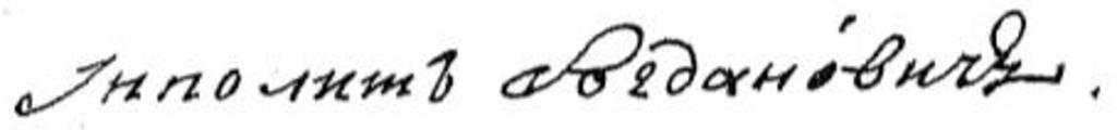 | Keywords: I Bogdanoch signature.jpg ru Подпись Богдановича Ипполита Фёдо овича before 1803 По т етная гале ея усских деятелей 1864-1865 / изд А юнсте а Т 2 - 1869 URL http //dlib rsl ru/viewer/01003187639 page 311 Ippolit Bogdanovich PD-Art Uploaded with UploadWizard Ippolit Bogdanovich |
