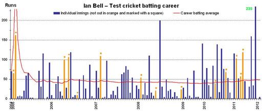 | Keywords: Ian Bell test batting career v1b.png This graph details the test match performance of cricketer w Ian Bell and was created by en wiki w user EdChem Each bar indicates a single test match innings blue ones for innings in which he was dismissed orange ones marked with a square for innings in which he batted but was not out The red line shows career batting average as at the end of each innings An alternative version w File Ian Bell test batting career v1a png shows the same data but with a different vertical scale Another file w File Ian Bell test batting career v2 png shows a 10 innings moving average instead of the career batting average <p>The graph was generated with Microsoft Excel 2003 the resulting chart being copied to Adobe Photoshop 9 and saved in png format using data from w Cricinfo http //stats espncricinfo com/ci/engine/player/9062 html class 1;orderby start;template results;type batting;view innings and w Howstat http //www howstat com au/cricket/Statistics/Players/PlayerProgressBat asp PlayerID 3207 This version is current as at 22 January 2012 which is also the date it was prepared en wikipedia FastilyClone MTC EdChem w other versions EdChem wikipedia en Cc-zero Original upload log page en wikipedia Ian+Bell+test+batting+career+v1b png wikitable - 2012-01-22 11 59 57 1243× 525× EdChem This graph details the test match performance of cricketer Ian Bell and was created by en wiki user EdChem Each bar indicates a single test match innings blue ones for innings in which he was dismissed orange ones marked with - Uncategorized 2016 July 24 |