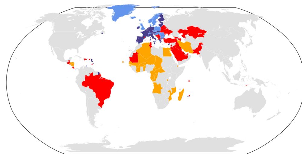| Keywords: IBANMap-World6.svg Notes for Editors This map is and should always be derived from Canuckguy's File BlankMap-World6 svg which is in human-editable plain text svg+xml format Please do not change any country borders here but always take the latest version of File BlankMap-World6 svg as as basis For the IBAN countries there is a block of style definitions involving country codes at the beginning of this file IBANMap-World6 svg Please check the https //www swift com/standards/data-standards/iban SWIFT IBAN Registry Download and https //www iban com/structure html iban com regularily for additional countries using the IBAN and insert their TLD codes in the block mentioned above For a new version of IBANMap-World6 svg please merge the following 3 parts the latest version of File BlankMap-World6 svg the TLD codes block from the latest version of this file IBANMap-World6 svg your additional TLD codes <br> IBAN in Europe and other countries legend orange IBAN structure is defined red IBAN structure is registered with SWIFT 6495ed Country participates in SEPA 483d8b Euro is country's currency IBAN in Europa und weltweit legend orange IBAN-Struktur ist definiert red IBAN-Struktur ist bei SWIFT registriert 6495ed Land nimmt an SEPA teil 483d8b Euro ist Landeswährung 2013-12-30 22 31 13 Derived from Canuckguy's File BlankMap-World6 svg by Gfis Gfis ValidSVG cc-by-sa-3 0 Maps of the European Union and third countries SVG maps of the world Political maps Maps with Robinson projection Banking ISO standards IBAN |