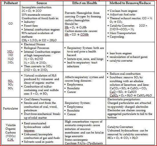Keywords: IBenvironmental.JPG en Chart of Common Pollutants' source Effect on Health and Methods to reduce Own Jenn33191 2009-05-17 Tables information