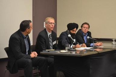 | Keywords: IBMPortableModularDataCenter6.jpg en IBM Portable Modular Data Center Tour - Panel Discussion <br/>Left to Right Sean McDonagh APC Schneider Electric Bernard Oegema IBM Satwinder Singh Stantec Chris Loken SciNet U of Toronto own Raysonho Open Grid Scheduler / Grid Engine 2011-09-22 Cc-zero Portable Modular Data Center |