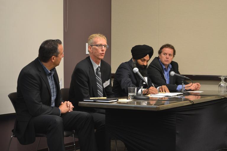 Keywords: IBMPortableModularDataCenter6.jpg en IBM Portable Modular Data Center Tour - Panel Discussion <br/>Left to Right Sean McDonagh APC Schneider Electric Bernard Oegema IBM Satwinder Singh Stantec Chris Loken SciNet U of Toronto own Raysonho Open Grid Scheduler / Grid Engine 2011-09-22 Cc-zero Portable Modular Data Center |