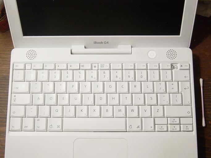 Keywords: IBook with DVORAK.JPG A Mac iBook with the keys manually rearranged to the Dvorak Simplified Keyboard layout Photo by Michael Bunsen Own 2006-08-10 Michael Bunsen I hereby release this work into the public domain Alternative keyboards computing Dvorak keyboard layouts Apple Inc keyboards |