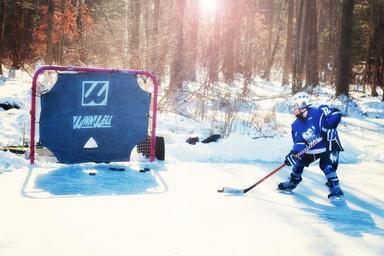 Keywords: ice hockey hockey player young winter ice outdoor hockey sport player child play goal