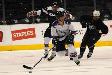 Keywords: ice hockey players skating puck stick skate team goal competitive forward college action