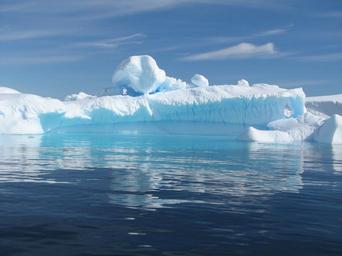 Keywords: iceberg calm blue ice cold floating ocean reflection snow pole expedition white