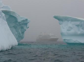 Keywords: icebergs antarctica southern ocean ice floes cruise ship foggy fog