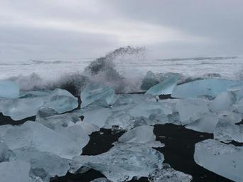 Keywords: iceland glacial ice jokulsarlon sea spray beach ash