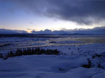 Keywords: iceland thingvellig landscape wide winter snow blue hour clouds sky view lake parliament historically