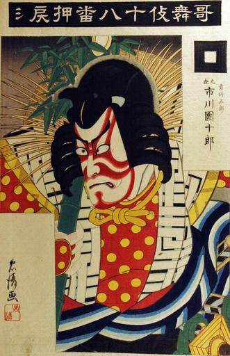 | Keywords: Ichikawa Danjuro IX as Aotake Goro in Push and Repel (5759570750).jpg en <b>Accession Number </b> 2008 69 <b>Display Artist </b> Torii Kiyotada <b>Display Title </b> Ichikawa Danjuro IX as Aotake Goro in Push and Repel <b>Series Title </b> Eighteen Favorite Kabuki Plays <b>Suite Name </b> Eighteen Favorite Kabuki Plays <b>Creation Date </b> 1895 <b>Height </b> 13 9/16 in <b>Width </b> 8 7/8 in <b>Display Dimensions </b> 13 9/16 in x 8 7/8 in 34 45 cm x 22 54 cm <b>Credit Line </b> Gift of Captain George B Powell Jr JAGC USN <b>Label Copy </b> El nombre del editor y el ttulo de la serie estn escritos sobre el paraguas <b>Collection </b> http //www sdmart org/art/our-collection/asian-art The San Diego Museum of Art 2008-05-13 13 15 03 https //www flickr com/photos/thesandiegomuseumofartcollection/5759570750/ Flickr en thesandiegomuseumofartcollection PD-old-100 Art of Japan in the San Diego Museum of Art |
