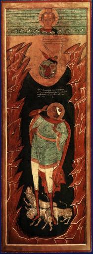 Keywords: Icon daniel.jpeg Russian icon of Daniel with lions П о ок Даниил во ву львином с об азом Х иста Эммануила в небесах Боковая две ь иконостаса XVII век Поволжье П о ок Даниил во ву львином Боковая две ь иконостаса 17 век Поволжье Де ево левкас темпе а 170х61 см В вытянутый по ве тикали фо мат искусно вписан основной сюжет дополненный эпизодом посещения Даниила п о оком Аввакумом Композицию заве шает об аз Х иста Эммануила в небесах Изоб ажения Даниила во ву львином были ха акте ны для боковых две ей усских иконостасов XVI- XVII веков В настоящее в емя подобные п оизведения являются едкостью Икона исполнена в легкой свободной мане е; с особым изяществом на исованы фигу а Даниила и как бы взбегающие к небу го ки Тво ческая свобода иконописца в об ащении с художественным наследием убежа XVI- XVII веков свидетельствует о х онологической близости памятника этому пе иоду Икона может быть дати ована пе вой т етью XVII в Ее локализация зат уднительна Редкость и художественные достоинства памятника делают его ценностью музейного значения http //www bibliotekar ru/rusIcon/22 htm century 17 Anonimous PD-old-100 Daniel in the lions' den 17th-century icons of Russia Files uploaded by Shakko from various sources Icons of Daniel Icons of Povolzhie Iconostases in Russia Icons with lions Deacon door icons with Paradise