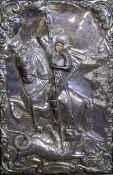 Keywords: icon saint gheorghe fight devil church spiritual symbol religious ornament old silver religion metal orthodox catholic romania ancient tradition spirituality