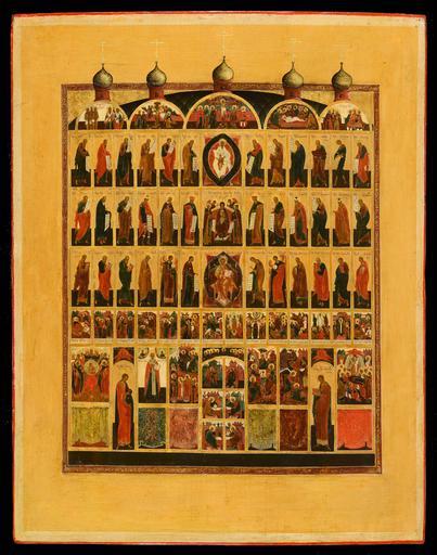 | Keywords: Iconostasis icon (19th c., Russia, priv coll).jpg Miniature Iconostasis / Private Collection Germany The icon painted in fine detail reproduces in miniature the icon screen that separates the nave from the sanctuary in the orthodox church The icon is divided in six registers The lower register is centred by the Royal Door with two more doors depicting deacons to the left and to the right Between the doors large icons are depicted showing the Synaxis of the Archangels St Nicholas the Pokrov of the Mother of God the Trinity the Beheading of St John the Forerunner and the Dormition The second row depicting fourteen icons with the most important feasts of the orthodox church the third row depicting the Deesis centred by Christ Enthroned the fourth row depicting the prophets holding open text scrolls in their hands en praying to the Mother of God Enthroned in the centre the fifth row depicting more prophets and forefathers also holding text scrolls and with God Father in the centre the sixth row depicting saints and scenes from the Passion of Christ http //www morsink com/russian-icons/miniature-iconostasis-p-20 second half 19th century RusIcon PD-old-100 Files uploaded by Shakko from various sources Private collections of Russian art 19th-century icons of Russia Icons of Old Testament figures Iconostases in Russia Multiple-images icons |