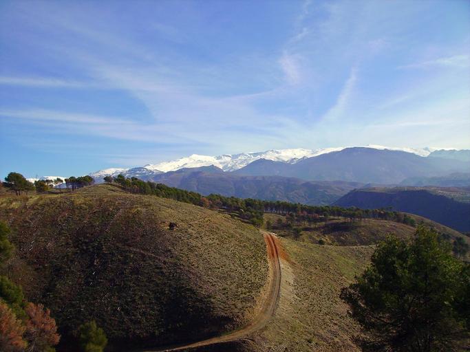 Keywords: idaho mountains forest trees snow summer spring sky clouds peaceful road