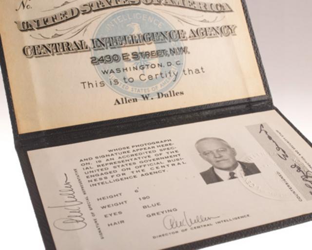 | Keywords: Identification Card of Allen W. Dulles.jpg Identification Card of Allen W Dulles https //www cia gov/about-cia/cia-museum/experience-the-collection/images/artifacts/450x360/museum_dulles_id_card_008 jpg at https //www cia gov/about-cia/cia-museum/experience-the-collection/index html /artifact/30 2012-07-23 CIA photo PD-USGov-CIA CIA Museum Allen Dulles PD-USGov |