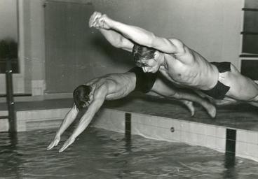 | Keywords: idrett andre verdenskrig andreverdenskrig nordmenn i sverige under krigen nordmennisverigeunderkrigen 2. verdenskrig 2verdenskrig sport okkupasjonstiden Norsk idrettsliv i Sverige Et svensk idrettsinstitutt på Bosöen i Stockholms skjærgård har ved forskjellige anledninger vært stilt til disposisjon for det norske Idrettskontoret i Stockholm. Bildet viser deltagerne ved et kurs for utdannelse av idrettsinstruktører. To av deltagerne stuper ut i svømmebassenget. Stockholm 24.1.45. RA/PA-1209/Uc/71/4/ S 5389 Norsk idrettsliv i Sverige Et svensk idrettsinstitutt på Bosöen i Stockholms skjærgård har ved forskjellige anledninger vært stilt til disposisjon for det norske Idrettskontoret i Stockholm. Bildet viser deltagerne ved et kurs for utdannelse av idrettsinstruktører. To av deltagerne stuper ut i svømmebassenget. Stockholm 24.1.45. RA/PA-1209/Uc/71/4/ S 5389 |