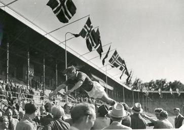 | Keywords: idrett andre verdenskrig andreverdenskrig nordmenn i sverige under krigen nordmennisverigeunderkrigen 2. verdenskrig 2verdenskrig sport okkupasjonstiden outdoor I dagene 1. 2. og 3. august 1944 arrangertes i Stockholm krigsmesterskapet i svømning, fotball og friidrett. Bildet viser en situasjon fra finalekampen i fotball på Stadion 3. august. RA/PA-1209/Uc/71/4/ S 5138 I dagene 1. 2. og 3. august 1944 arrangertes i Stockholm krigsmesterskapet i svømning, fotball og friidrett. Bildet viser en situasjon fra finalekampen i fotball på Stadion 3. august. RA/PA-1209/Uc/71/4/ S 5138 |