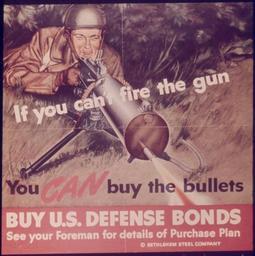 | Keywords: "If You Can't Fire The Gun You Can Buy The Bullets" - NARA - 514586.tif Scope and content General notes 514586 Local identifier 44-PA-1062 Office for Emergency Management Office of War Information Domestic Operations Branch Bureau of Special Services 03/09/1943 - 09/15/1945 Still Picture Records Section Special Media Archives Services Division NWCS-S National Archives at College Park 8601 Adelphi Road College Park MD 20740-6001 1941 - 1945 Record group Record Group 44 Records of the Office of Government Reports 1932 - 1947 Record group ARC 373 World War II Posters compiled 1942 - 1945 Series ARC 513498 File unit File unit ARC Variant control numbers NAIL Control Number NWDNS-44-PA-1062 yes Other versions <gallery> File If_You_Can't_Fire_The_Gun_You_Can_Buy_The_Bullets _-_NARA_-_514586 tif tif File If_You_Can't_Fire_The_Gun_You_Can_Buy_The_Bullets _-_NARA_-_514586 jpg jpg </gallery> NARA-cooperation PD-USGov NARA TIF images with categorized JPGs |