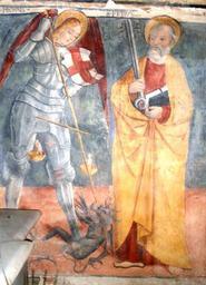| Keywords: Ignoto XV secolo Michele Pietro Favria(TO).jpg San Pietro Vecchio church School of Martino Spanzotti St Michael and St Peter Favria Turin Italy Own 2007-09-30 Laurom San Pietro Vecchio Favria Frescos in Favria 15th-century paintings of Saint Peter Saint Michael and the dragon Martino Spanzotti 15th-century frescos in Italy Frescos of Saint Michael |