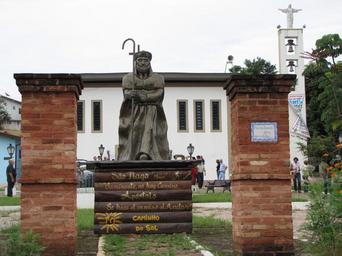 | Keywords: Igraja Águas de São Pedro.JPG Estátua do Apóstolo São Tiago Maior em frente à Igreja Matriz Imaculada Conceição em Águas de São Pedro Brasil No pedestal abaixo da estátua há os seguintes dizeres <br> São Tiago Mayor <br> Camínante sic no hay Camino <br> Apóstolo<br> Se hace el camino al Andar <br> CAMINHO DO SOL Os versos em espanhol são baseados nos versos da estrofe vinte e nove do poema Proverbios y cantares do livro Campos de Castilla de autoria do poeta espanhol Antonio Machado Os versos originais são caminante no hay camino / se hace camino al andar que significam caminhante não há caminho se faz caminho ao andar O Caminho do Sol é um caminho preparatório aos Caminhos de Santiago A placa informativa no pilar à direita da imagem diz <br> Portal dos Caminhos <br> Caminho do Sol<br> Águas de São Pedro<br> 25 de Fevereiro 2007 ---- Statue of the Apostle Saint James in front of the Immaculate Conception Mother Church in Águas de São Pedro Brazil In a pedestal under the statue there are the following sentences <br> Saint James Mayor <br> Camínante sic no hay Camino <br> Apostle<br> Se hace el camino al Andar <br> WAY OF THE SUN The verses in Spanish are based on the verses from the strophe twenty-nine of the poem Proverbios y cantares from the book Campos de Castilla written by the Spanish poet Antonio Machado The original verses are caminante no hay camino / se hace camino al andar that means wanderer there is no road the road is made by walking The Way of the Sun is a preparatory way to the Way of St James The sign in the column at the right side of the image says <br> Ways' Gate <br> Way of the Sun<br> Águas de São Pedro<br> February 25 2007 own Marcos Guerra Uso permitido informando a autoria Águas de São Pedro Antonio Machado |