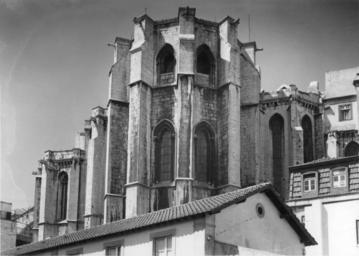 | Keywords: gótico arquitectura convento do carmo conventodocarmo hccity mário tavares chicó máriotavareschicó mário novais márionovais lisboa gótica arquitectura gótica arquitecturagótica Vista exterior. Fotógrafo: Mário Novais, 1899-1967. Orientador científico: Mário Tavares Chicó, 1905-1966. Data aproximada de produção da fotografia original: 1954. [CFT015.199.ic] Igreja do Convento do Carmo Mandado construír em 1389 pelo Condestável D. Nuno Álvares Pereira, este edifício sofreu diversas campanhas, que lhe foram alterando a feição inicial. De entre elas, destacam-se as realizadas durante o pós-terramoto de 1755, apesar de não terem observado a necessidade de cobrir as naves, o cruzeiro e o transepto da igreja, quer devido à ausência dos meios necessários ao seu restauro e/ou adaptação, como de uma certa postura assumida no âmbito da teoria de conservação e restauro mantida pelos nossos mais destacados intelectuais desde, pelo menos, o 1.º quartel de oitocentos. De planta de cruz latina, constituída por três naves de cinco tramos, transepto saliente e cabeceira escalonada com a capela-mor ladeada por quatro absidíolos de diferentes dimensões - quer em largura, como em profundidade -, o seu frontespício encontra-se dividido em três panos, terminando em empena os laterais, rasgando-se por um amplo vão rectangular. Contrafortado com portal de arco com seis arquivoltas sobre colunas de capitéis vegetalistas, e inscrito em alfiz, o seu corpo central termina com uma rosácea truncada. Interiormente, as suas naves encontram-se apartadas por intermédio de pilares cruciformes, de capitéis vegetalistas e arcos quebrados, sendo que as naves laterais possuem, cada uma, quatro capelas, de arco igualmente quebrado, e emolduradas por colunas segmentadas, coroadas por janelas de vão curvo, no intervalo das quais encontramos mísulas de arranque das abóbadas. Desde 1864 que serve, simultaneamente, de sede da Associação dos Arqueólogos Portugueses e de espaço museológico - Museu Arqueológico do Carmo (MAC), também ele pertença desta sociedade secular. (Fonte IPPAR - tinyurl.com/457kc5) Vista exterior. Fotógrafo: Mário Novais, 1899-1967. Orientador científico: Mário Tavares Chicó, 1905-1966. Data aproximada de produção da fotografia original: 1954. [CFT015.199.ic] Igreja do Convento do Carmo Mandado construír em 1389 pelo Condestável D. Nuno Álvares Pereira, este edifício sofreu diversas campanhas, que lhe foram alterando a feição inicial. De entre elas, destacam-se as realizadas durante o pós-terramoto de 1755, apesar de não terem observado a necessidade de cobrir as naves, o cruzeiro e o transepto da igreja, quer devido à ausência dos meios necessários ao seu restauro e/ou adaptação, como de uma certa postura assumida no âmbito da teoria de conservação e restauro mantida pelos nossos mais destacados intelectuais desde, pelo menos, o 1.º quartel de oitocentos. De planta de cruz latina, constituída por três naves de cinco tramos, transepto saliente e cabeceira escalonada com a capela-mor ladeada por quatro absidíolos de diferentes dimensões - quer em largura, como em profundidade -, o seu frontespício encontra-se dividido em três panos, terminando em empena os laterais, rasgando-se por um amplo vão rectangular. Contrafortado com portal de arco com seis arquivoltas sobre colunas de capitéis vegetalistas, e inscrito em alfiz, o seu corpo central termina com uma rosácea truncada. Interiormente, as suas naves encontram-se apartadas por intermédio de pilares cruciformes, de capitéis vegetalistas e arcos quebrados, sendo que as naves laterais possuem, cada uma, quatro capelas, de arco igualmente quebrado, e emolduradas por colunas segmentadas, coroadas por janelas de vão curvo, no intervalo das quais encontramos mísulas de arranque das abóbadas. Desde 1864 que serve, simultaneamente, de sede da Associação dos Arqueólogos Portugueses e de espaço museológico - Museu Arqueológico do Carmo (MAC), também ele pertença desta sociedade secular. (Fonte IPPAR - tinyurl.com/457kc5) |