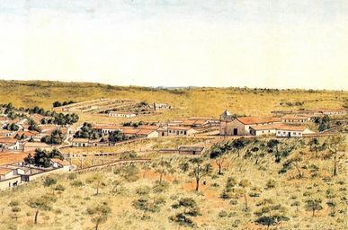 | Keywords: Igreja do Rosario (Prospecto da Villa do Bom Jesus de Cuyaba).jpg Detalhe do Prospecto da Villa do Bom Jesus de Cuyabá feito durante a passagem da expedição de Alexandre Rodrigues Ferreira por Cuiabá Mato Grosso Brasil tendo em destaque a Igreja de Nossa Senhora do Rosário e São Benedito Collection of Museu Bocage de Lisboa Portugal 1789-1792 José Joaquim Freire probable PD-old-100 Retouch in blotchs and scratchs Mateus Hidalgo Igreja de Nossa Senhora do Rosário e São Benedito Watercolor paintings of landscapes |