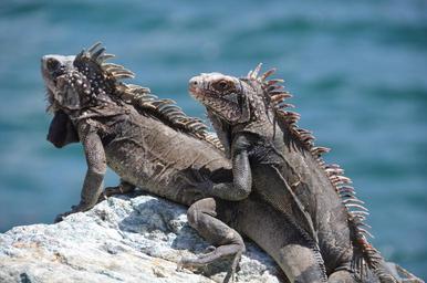 Keywords: iguana stone sea grey coast water lizards iguanas
