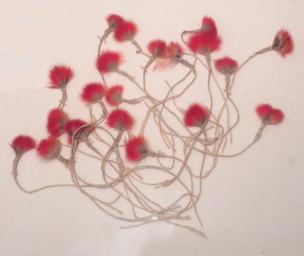 | View Original: | 'I'iwi feathers and olona fibers prepared for making traditional Hawaiian feather work.JPG (1628x1372) | |||